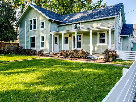 Charming vintage home w/new roof June 2016. Open concept Kitchen w/laminate flooring, island, gas cook top/elec oven range and SS appliances, new carpets,fresh paint, covered porch & fenced lrg front yd with bonus/den room. Much of vintage character intact! Off street parking in front & on pad in back. Original clawfoot tub. Great location near Autzen! Close to river/path! SOLD AS IS .Home needs some exterior TLC.