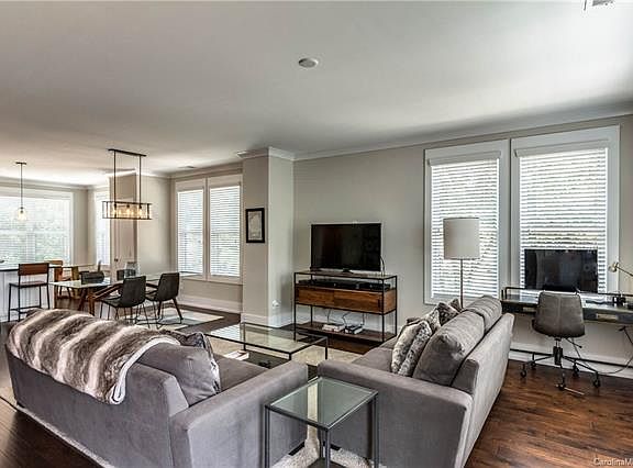 Like new, all brick, end unit townhome with 3 full bedrooms plus a bonus / rec space on the lower level. Bright, airy, open floor plan, with nicely appointed finishes. 9 foot ceilings. Upgraded features include Rinnai gas tankless hot water heater, solid core doors, solid shelving in closets, built-out master closet, low voltage networking, and zoned HVAC with Nest Thermostat. Great outdoor spaces. Enjoy all that the Dilworth neighborhood has to offer, it's right out your front steps: Grocery stores, shops, restaurants, parks and greenway. Move right in!