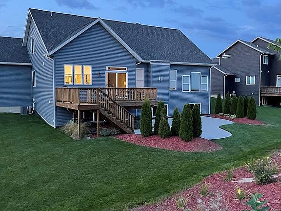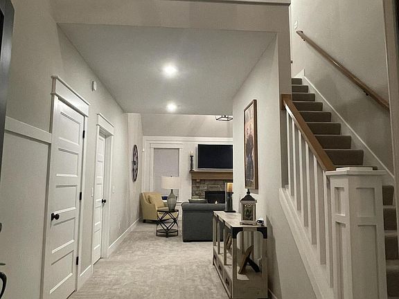 Welcome Home! This home was a parade home for Buffum builder. Extra details in this home. 5 bedrooms plus a large bonus room/bedroom/office. 3.5 baths, large 3 stall garage. Open concept floor plan with beautiful quartz counter tops, large center island, hood vent, wood floors, large walk-in pantry, stainless steel appliances. Kitchen opens up to the Living room with a nice warm gas fireplace, that has a custom mantel. Lots of large windows on this floor. The mudroom has built in lockers, 1/2 bath, laundry room. Large master Suite with tray ceilings. The master bath has a beautiful tile shower, large walk-in closet, two sinks with lots of cupboards. Lower level is being completed with 1 bedroom, bath, large living room. Still time to pick out colors.