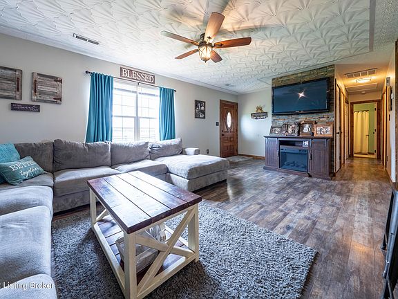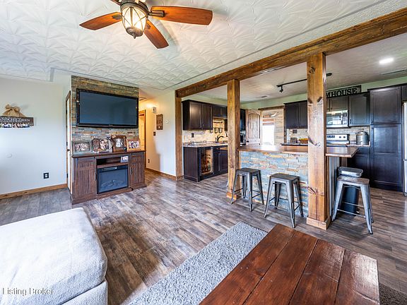 Escape city living to this quaint little horse farm just minutes from Taylorsville Lake State Park. Totally remodeled 4 bedroom, 2 full bath, open concept ranch, with a brand new roof as of February 2022! The house is adorned throughout with luxury vinyl plank flooring. Rustic beams and woodwork, stack stone accents in the family room sets the tone of country living at its best. The kitchen features new cabinetry, large island, stainless steel appliances including a beverage cooler and stone backsplash. There are 2 primary bedrooms, one with trey ceiling, en suite bath and walk in closet. The second bedroom that is used as the primary now has a spectacular view of the pastures (there are 4 fully fenced pastures). and two secondary bedrooms with vaulted ceilings. The 6 stall horse barn has electricity, water, a tack area and hay storage. There is also a donkey shelter and gorgeous creek running through the property.