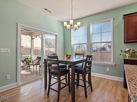 Welcome to this beautiful, light filled home featuring a MAIN LEVEL OWNER'S SUITE, spacious living area open to the breakfast nook and grand kitchen complete with expansive granite island & counters and large, walk-in pantry. A dedicated office/formal dining room adorned with French doors for privacy, half bath and separate laundry room round out the main level. Upstairs offers 3 generously sized secondary bedrooms and full bathroom for guests, family or second home office. The backyard offers plenty of space for entertaining in the screened porch complete with ceiling fan or the extended patio with built-in brick benches. Great location just 5 minutes to local shopping & restaurants and 30 min to Raleigh.