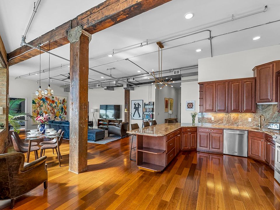 Perched atop Union City cliffs, just up the hill from Hoboken and down the street from the Heights, lies this incredible historic property. Oozing with warmth and architectural amazement, this true Soho-style loft condominium is certainly a collector's piece! You enter the property via your private entrance or building lobby and immediately are awe-struck by the soaring 11+ foot ceilings and exposed industrial elements. Original, re-appointed brick walls dance with white interior walls throughout creating an envelope of style and warmth. Two massive bedrooms (easily converted to three after approvals) and two large spa-like baths, allow you to live an expansive lifestyle. The vast open floor plan makes this an entertainer's dream. The spacious suburban-style kitchen boasts stainless steel appliances including gas range and dishwasher. Beautiful wood cabinets and stone countertop loop around an extra large breakfast bar open to the living and dining spaces. Oversized 6+ foot windows on both the east and west sides of the loft bathe the space in rich light throughout the day. Currently not used but just waiting for personalization (approvals needed) a large basement accessible only from this unit, lies beneath and must be seen to be believed! Laundry machines in the unit, incredibly oversized in-unit storage and one gated, private parking spot included a block away, complete this perfect real estate package. Don't let interest rates keep you from living that luxury lifestyle!