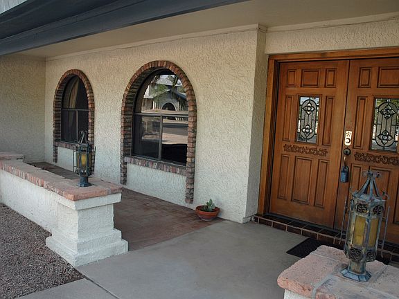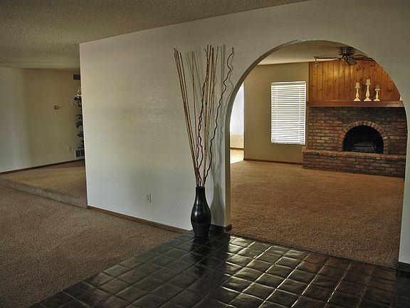 You will love the floor plan in this well maintained single level ranch style home. Enter through double entry doors with beautiful leaded glass. Find 3 spacious bedrooms, 3 baths, living room, family room with fire place, formal dining room, kitchen nook with bay window, breakfast bar, large walk-in pantry and huge laundry room. French doors to pool area from master bedroom and kitchen. Beautiful back yard has covered patio, sparkling pool, grass areas, sprinkler system and mature fruit trees. Exterior garage door and exit door from 3rd bath to pool. Solid wood cabinets and wood trim throughout home. New tile in kitchen area, newer carpet throughout, and roof replaced in 2000. Water softener and reverse osmosis systems. Large extended garage with plenty of storage. Traditional sale.