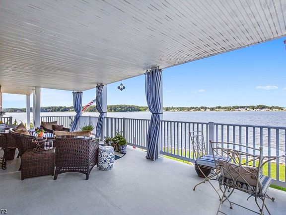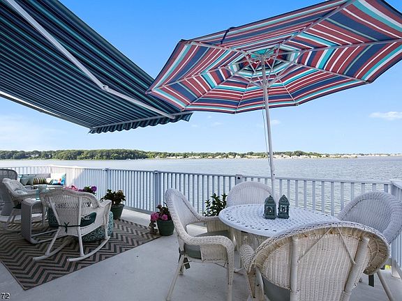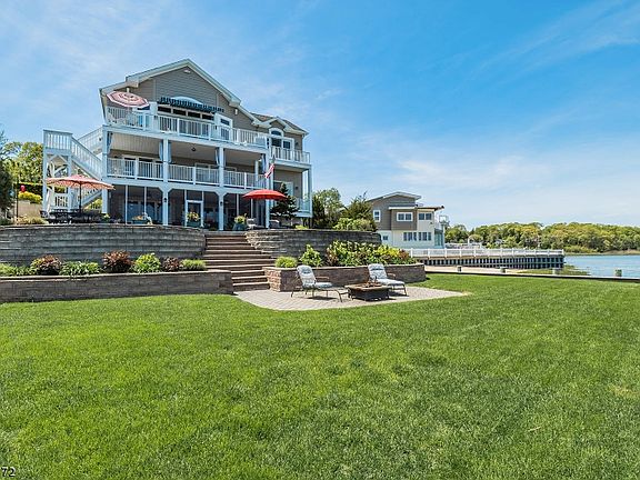 ''Watersedge'' is rare offering of a reverse living custom-built home on the Shark River Tidal Basin in Wall Twp. NJ. You have 10,000 square feet of riparian grant for bay water rights, docks, boating, jet skis AND a private 100' sandy beach for your enjoyment. The views of the sunrise and sunset are fabulous from both 45' decks and the screened in porch. There is over 200' of vinyl bulkhead for your pleasure, a manicured lawn, terracing with roses and hydrangeas everywhere. The privacy in the rear lawn is evident as you view the egrets, loons, seagulls and the eagles that pass by daily. A very large lot affords this privacy as does the careful plantings included to protect your enjoyment. The reverse living home demands by its nature, an open floor plan with stunning views and lots of glass in the living, kitchen, media, dining and library areas, which are all on this top floor and where most of the time is spent. This magnificent sunlight room is 35x30 with 13' ceilings and incorporates a highly custom kitchen with high end appliances, Swarovski crystal hardware, a wine bar, Viking frig, 6 burner Dacor range, a custom eating bar, room for an 8 person eating table and views you will cherish forever. Alongside this room is a media room (25x15) also with tremendous views, and a TV with a surround sound system in place. A dual-sided fireplace will warm you in the winter. On this top level is also a full bath, huge open dining area, a full 15' pantry and a reading room (library) which is also a bedroom if needed. This level is where you will not want to leave and is a great entertaining area for your guests or family. The home has 4850 square feet of finished living space, 5 bedrooms, 5 full baths, and is serviced by natural gas and a 2 zone AC. The middle level has 4 bedrooms, 3 baths, a dressing room, large laundry room, master bedroom (with private deck) and a guest suite with views. There is a private middle level sanctuary deck overlooking the bay. The fully finished lower level with views (above ground) is a full gym, a billiard room, with game table, TV and a 2nd kitchen area or wine room. There is a full bath on this level. The screened porch is 28x15 with stone walls and again, privacy and VIEWS. This is the ultimate resort like home which is offered completely furnished at the list price. Owner downsizing and can accommodate your settlement date. Only 10 mins to the beaches and is located on a dead-end street to assure your exclusive privacy. Settlement can be accommodated, either quickly or delayed. House is NOT in a flood zone/NO Sandy damage to house. No flood insurance is needed. Easy to show.