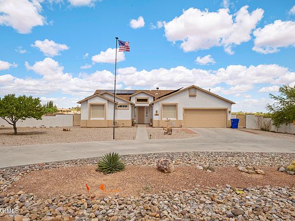 Wonderful home in the desirable Ranchos Carmela Estates subdivision! Amazing natural light welcomes you into this home. A must-see kitchen, opened to the dinning room and living room. The primary bedroom has a walk-in closet, bathroom with double sinks and a stunning shower — check out those views from your bay window! Adjacent to the laundry room, there is a large room with a whole wall with built-in cabinets — never run out of space! The other rooms are located on the other side of the house, allowing you some extra privacy! Enjoy quiet evenings before the fireplace or relaxing on your hot tub, complemented with a struggle free cover — you can open and close it almost single-handed! Save on your electric bill with the solar system fully paid off!