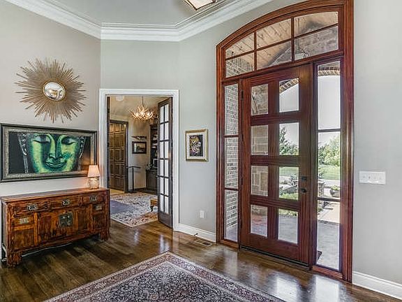Enter the gates of the fabulously located Waterfront Residences to find this Extraordinary custom built Executive ranch with circle drive which will wow with the indoor & outdoor amenities it offers. Your guests will be greeted upon entry to the front door with an abundance of over sized windows, living room with access to office space and formal dining. This open floor plan boasts impressive workmanship & quality throughout -- incredible kitchen/hearth room combo is certainly a desired location to entertain or hang out with the family with honed granite counters, large eating bar, prep island with additional sink, Wolf gas range, double ovens, large sub-zero refrigerator, walk-in pantry, fireplace & informal eating space. The master suite is exquisite in design & space with private access to the back deck. This Master bath has an incredible mix of design -- two vanities, Victoria Albert soaking tub, large shower with multiple shower heads, spacious walk-in closet with built-in drawers that opens into the office with built-in bookcases which can be shut for privacy. Another bedroom suite with full bathroom at opposite end of the house, mud room, large laundry & powder room complete this well thought out main floor plan. You will not be disappointed in the lower level of this property as it offers everything you can imagine! Expansive in scale, this walk-out-view out basement is complete with open concept again-- family room, game room, wine room, wet bar w/ice maker & dishwasher. 4 additional bedrooms w/ bathrooms, and a powder bathroom on the lower level. Separate theater room & a 32 x 21 exercise/hobby room. Step outside to relax on your covered deck that overlooks the in-ground pool with slide, diving board and full sized sport court! This home offers spectacular finishes of wood, granite, stones mixed with neutral decor that produce a beautifully entertaining masterpiece or family retreat that is ready to move in! Do not delay, schedule your private showing today.
