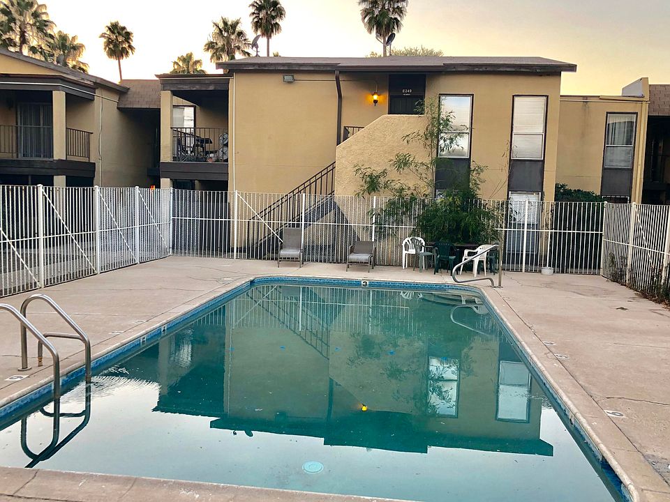 GREAT INVESTMENT or student housing!!! This 2 bedroom 1 1/2 bath unit is located conveniently close to shopping, public transportation. Enter large Living room w/ Tile & nice coat closet. Jack & Jill Bathroom has two 1/2 baths with a shared Shower/ Tub Combo. No CARPET!! Fully enclosed Arizona Room w/ Security bars & a shady Mesquite tree to enjoy the patio in privacy. Kitchen has Stainless Steel Stove & Microwave, Pull down Stainless sprayer, Fridge, & tons of cabinets!! HOA is $196.55 per month & offers Water, Sewer, trash, pool & spa, laundry facilities, carport parking for residents, pest/termite control, fire protection, Personal & Common area liability insurance, Tennis courts and more. Home warranty offered w/ acceptable offers to the seller only. Submit all offers FAST! Quick Close