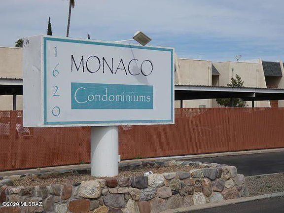 Very charming and well-maintained first floor, 2-bedroom 2-bath northeast Tucson condo available in desirable The Monaco. You will love living in this quiet community which offers a sparkling pool, a perfect spot to relax and cool off on hot summer days. Tastefully upgraded interior features new tile flooring throughout the condo, neutral new paint tones and stylish high-end laminate countertops throughout. Two sets of sliding glass doors, from the master bedroom and the dining area, lead to the private patio. Master retreat includes his and hers closets. Call to schedule your showing today