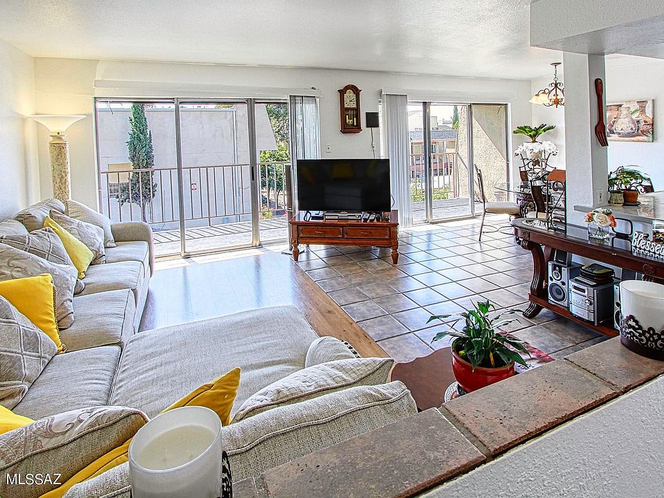 * Light, Bright Remodeled Cozy Condo! Entry leads to spacious Living Room that faces wall of mostly glass which opens onto long, covered balcony which is a perch from which to view the Santa Catalina Mtns. The Kitchen is open to Dining area which also takes in the balcony view. Two Bedrooms & TWO BATHROOMS make this an ''in demand'' floor plan. There are many built-in shelves adding function and storage. HOA payment covers water, roof, exterior maintenance, pool, rec center, pest control, trash pick up. The Monaco is close to everything! Trader Joe's, Lowe's, medical services, banking, bus lines, restaurants. Affordable, low maintenance, delightfully renovated; a condo you can call ''Home''.