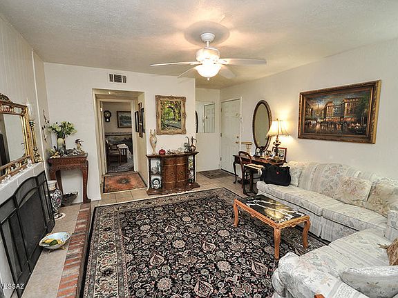 This adorable and affordable upper level eastside condo offers 2 bedrooms, 2 bath with living room, cozy fireplace, Galley kitchen, dining room with view of Catalinas, sliding glass door leading out to balcony for outdoor entertaining. The two bathroom include a private sink and toilet and share the shower/tub combo in between. Master bedroom has sliding glass door to balcony as well. The HOA covers water, exterior maintenance, roof, trash/sewer,termite control, pool maintenance, parking and landscaping. The pet friendly community has 3 pools, a clubhouse and onsite laundry facilities! Make this your new home today! This condo won't last LONG!