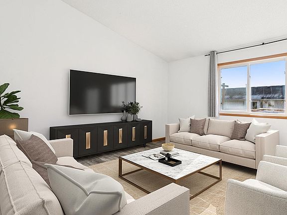 Discover effortless living in this beautifully updated 3BD/1BA three-level townhome, where comfort meets style at every turn. Step inside to find an inviting, sun-filled layout enhanced by all-new carpeting, fresh paint, modern light fixtures and fans, new decking, and durable vinyl flooring. The south-facing living room welcomes natural light throughout the day, while a sliding door leads to your private deck—an ideal setting for morning coffee, evening grilling, or relaxing with friends. Upstairs, three well-appointed bedrooms and one full bath. The lower level expands your living space with a cozy family room, a convenient office nook, and a walkout patio perfect for enjoying the outdoors. Bonus rough in for future additional bathroom. Generous storage throughout ensures everything has its place. Located within walking distance to restaurants, shops, and your favorite coffee spot—with quick access to I-94 and Highway 35 for easy commuting—this townhome offers the perfect blend of convenience, comfort, and charm. A true must-see!