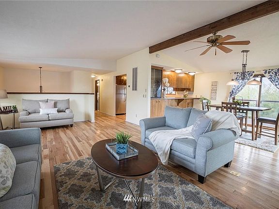 Enjoy the water and mountain views from this spacious home in the heart of Manette! There are 3 bedrooms, an extra room for office, den, sewing, game room? 1 full bath, 2 -3/4 baths, beautiful Hickory floors and 2 decks to sit and watch the views from. Situated on a large 0.23 acre lot with fruit trees, berries, mature landscaping and it's fully fenced. With over 700 square feet of heated shop space there is extra room to expand. 1.5 blocks to the city park and senior center. At the end of a dead end street, so no through traffic. Walking distance to downtown Manette, Bremerton and the ship yard. On city bus lines. This home still has lots of ways to update it to make it your own.