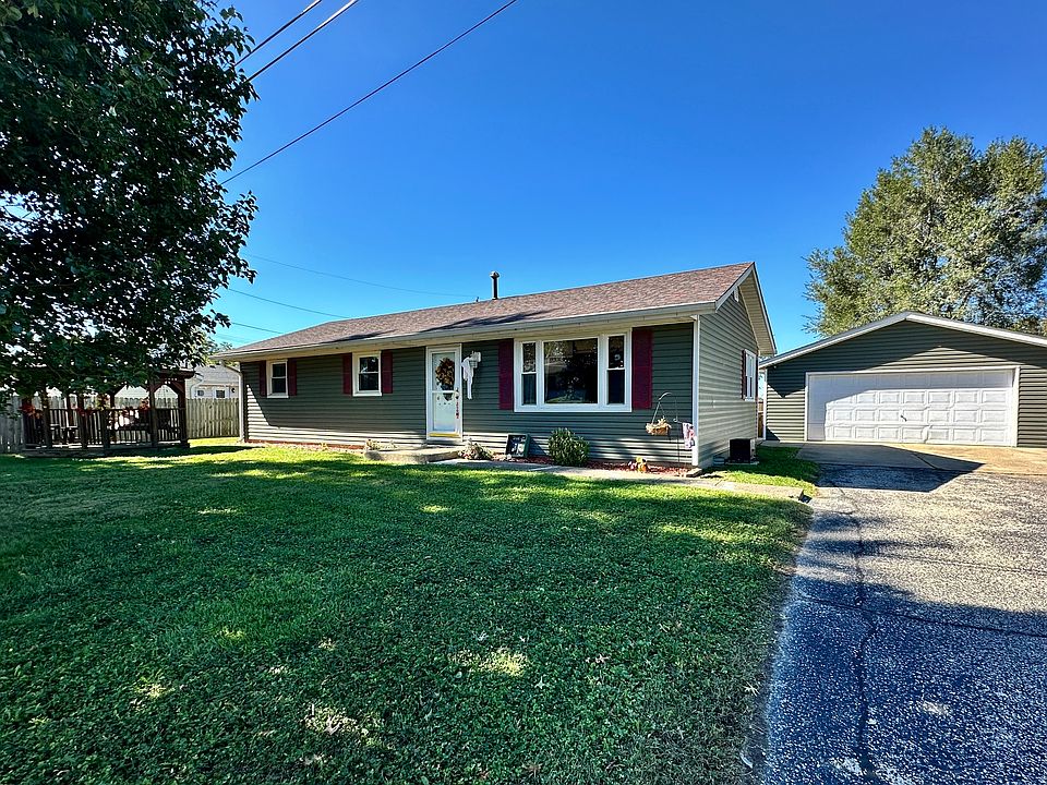 Charming 3-bedroom, 2-bathroom ranch home on a peaceful street. The standout feature is a spacious primary bedroom suite, boasting a luxurious walk-in shower and elegant double vanity. This cozy property also includes an inviting sunroom, perfect for relaxation. The large fenced backyard offers plenty of room for outdoor activities and includes a convenient storage shed. A detached garage provides additional space for vehicles or projects. This move-in ready home is a blank canvas, waiting for your personal touch. Ideally located for commuters, with easy access to both Bloomington and Indianapolis.
