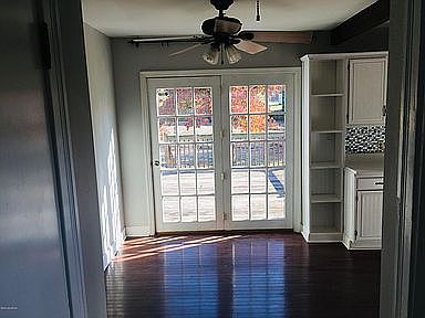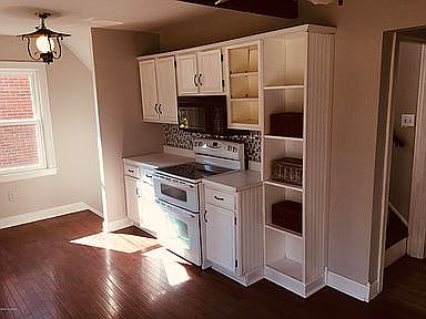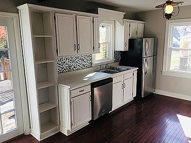 4 BR, 2 bath home with hardwood and concrete flooring. Also includes a stove, fridge, microwave, central AC, W/D hookups in the basement, ceiling fans basement for extra storage, fireplace, vaulted ceilings upstairs, deck with partially fenced in yard, and driveway parking.