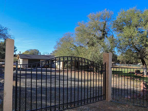 Welcome to country living in rural centrally located Cornville, AZ. Mature mesquite trees & lush green grass create a peaceful park like setting to enjoy from your wrap around porch. Easy care with sprinklers & a riding lawn mower (which is included). Located on the edge of the greenbelt on a desirable street without the greenbelt price tag. Perimeter fully fenced with custom drive gate entrance. Bring your horse & farm animals to this amazing 1 acre property. Room to build a detached garage/workshop, horse stable, or even a guest house. So much potential. Many updates throughout the home. Granite countertops, gas stove & lots of cabinetry for the chef in your family. Porch access from the master suite. This 3 bedroom, 3 bathroom home has something for everyone. Come see it today!