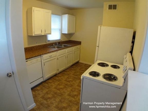 Our leasing process is 100% online. 1620 S Saint Paul St is a two-bedroom, one-bath home near Harry and SW Boulevard and close to Friends University. It rents for $795 a month with a $700 security deposit. The security deposit is due at lease signing, and the rent is due at move-in. A one-year minimum lease is required. The minimum monthly base gross household income requirement for this property, 3x the monthly rent, is $2385. It includes a living room and kitchen with a fridge, stove, and dishwasher, which the property owner provides. A separate washer and dryer area with hookups is also available. Pets are allowed with a non-refundable pet fee of $300 for the first two pets and $150 for each additional pet. Pit Bulls, Canary Dogs, Rottweilers, Doberman pinschers, Chows, Akitas, Alaskan Malamutes, German Shepherds, Huskies, Saint Bernards, Bull Mastiffs, Wolf Hybrids, or a mix of any breeds listed are not allowed for insurance and safety reasons. The tenant is responsible for all utilities, trash service, and lawn care. No smoking is allowed on the property This property is not Section 8 approved $45 application fee per person over 18, including a cosigner if necessary Benefits of Choosing a Property Managed by Harmon Property Management: Professional Property Management Text First Communication - Focused on Quick Response During Normal Business Hours Online Application Process Online Leases with Electronic Signatures Online Rent Payment - 100% Safe, Secure and Encrypted - Available 24/7/365 Online Maintenance Request Submission 24-Hour Emergency Maintenance Hotline Our leasing process is 100% online.Central Air Stove