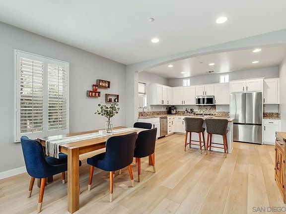 Beautifully maintained 3 bedroom 3.5 bath tri-level end-unit townhome with an attached two-car garage with epoxied floors located within the highly desirable community of Agave at Winding Walk. This amazing residence has updates throughout offering smart home features including a Ring doorbell, keyless entry, a Nest thermostat, Amazon Echo Show, fresh paint, new baseboards, custom light fixtures, a cozy fireplace and durable COREtec LVP flooring throughout the main living areas of the home. An open floorplan with large windows bask the home in an abundance of natural light. A beautifully appointed kitchen featuring large island, brand new smart enabled Samsung stainless steel appliances with remote management, closet pantry, and upgraded hardware. There is a bedroom and full bathroom on the first floor. The remaining bedrooms are upstairs including the spacious primary suite offering a walk-in closet and its own en-suite bathroom. Convenient office nook makes for a great work space. Resort style amenities include sparkling pools and spas, a playground, a gym, and several recreation areas. Conveniently located, just minutes away from shopping, dining, parks, great schools, Transportation, Otay Lake, Southwestern College, Interstate 125, plus so much more. Don’t let this opportunity pass you by!