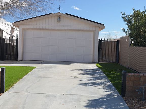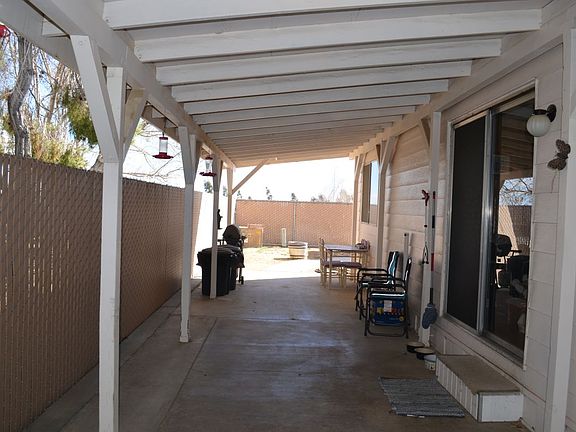 This home is a little treasure that you won't want to miss. The owners have spared no expense in making quality upgrades including NEW flooring, NEW 5-Burner Gas Stove, NEW pluming throughout, NEW artificial grass for external landscape, and much more. As you walk into the home, the living is extra large and provides a relaxing place to watch a movie or enjoy TV. It adjoins to a large dinning area that features a built-in hutch. The kitchen is remarkable. The rounded design offers a streamlined look and feel. There are a lot of cabinets in the kitchen, a pantry, and a breakfast bar. The kitchen is open to a family room that features a sliding glass door to the side covered porch. The bedrooms are large and have plenty of storage space in the closet. There is a Jack-and-Jill bathroom that comes off the gues room, and can be accessed from the large laundry room area. The back yard features 2 large sheds with full power, and the garage has a pass-though garage to the other side. The back yard has an RV gate for easy storage. All this and there is the option of an AC and Evaporation Cooler! There are too many features to list everything! Make an appointment to see it all!