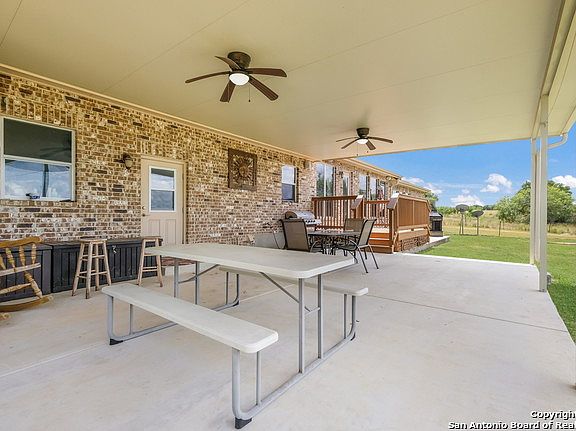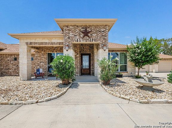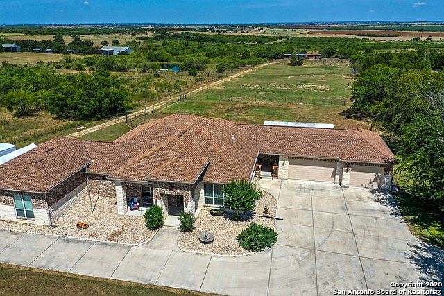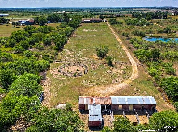 Look no more! Close to New Braunfels, Marion, Seguin, Schertz, Marion ISD!! 5 acres with horse barn, cross fenced. Stunning home built by current owners. Italian marble counters, built in dual ovens, 48 inch cabinets. Open living spaces along with private get-away spaces. Master Suite with spacious dual closets, huge walk-in shower. Flex room for exercise, music, or just privacy. BRs 2-4 in private wing. 4 stall horse barn, rear of property. This unique find has serene views. Come to real living!