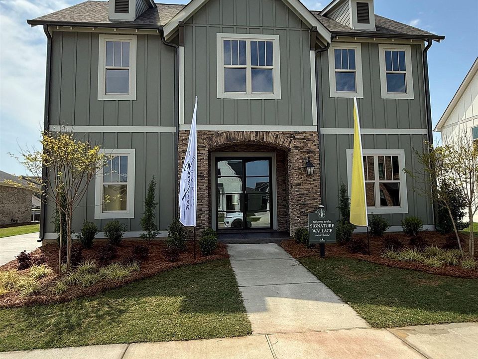 Welcome to this beautifully crafted home where modern elegance meets timeless design. Featuring a striking stone exterior, this 4 bedroom, 4.5 bath home offers the perfect blend of luxury and functionality. Step through sleek double glass doors into a grand entryway that opens to a spacious living room with soaring 20' ceilings and oversized windows that flood the space with natural light. The Kitchen flows seamlessly into the Living, while the luxurious Primary Suite boasts a spa-inspired shower for a true retreat experience. Upstairs, enjoy a massive Den and Bonus Room--ideal for movie nights, game days, or relaxing with family. With a 3 car garage, this move in ready home has everything you need and more! Exceptional home that combines comfort, space, and modern sophistication. More photos to come!