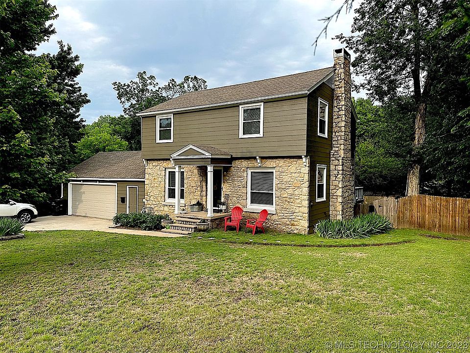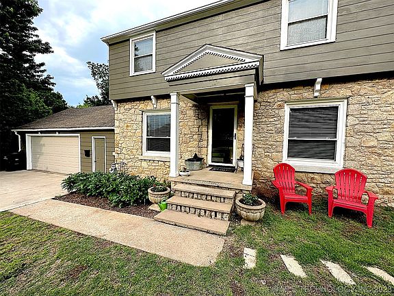WOW! Charm, Character, Storage on a park-like 1/2 acre in Bartlesville Wayside School District w/ split bedroom plan! 4 Beds, 3 full baths, No carpet! Tiger Oak hardwoods, white trim, fresh Int. & Ext. paint w/ style to melt away stress. LV Rm gas log Fireplace, Vinyl windows, wooded views over deck & expansive grassy yard, fully fenced. White Quartz Kitchen counters are so easy to clean, White Shaker Cabinets, gorgeous subway tile backsplash, SS appliances, gas cooktop, DBL built-in ovens, microwave and New vinyl flooring, Coffee bar in the pantry w/ glass doors. 2nd pantry in Flex Rm. w/ pet-friendly tile, 3 walls of natural light, open to gated deck overlooking play areas, large storage shed 21' x 12'. Get-away Master BedRm, ensuite Bath, office-or-nursery, and laundry, all in finished walk-out basement w/ 2 walls of closets. (Was rented as AirBnB w/ dual outside access, in past.) Split bed plan: 3 Bedrooms and hall bathroom on 2nd floor, w/ arches, marble vanity, B&W tile floor. From outdoors, Cement-walled cellar on lowest level. HVAC, furnace /AC 2016, Tankless Hot water Heater 2018. MUST SEE!