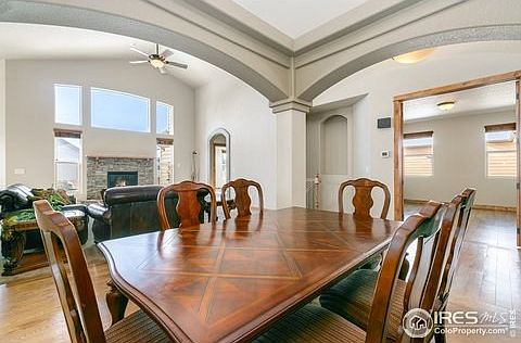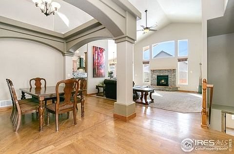 Located in Northwest Loveland, you will appreciate this beautiful four bedroom home with three full baths including an office and formal dining room. This home has many upgraded features like granite counter tops, solid wood doors, epoxy garage floor and out door fire pit with stone covered bench seating. The basement has 9' ceilings and a built-in entertainment area which includes a fireplace, you can also install surround sound with the pre-wired system for sound which includes the patio area. You will appreciate the large closets, built-in's and added features. This home also has a certified five star energy rating.