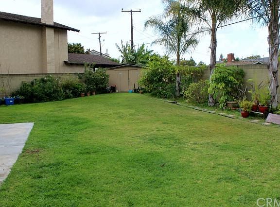This two story home is located on a quiet cul-de-sac street in a desirable part of Anaheim. The home sits on a large lot with a SPACIOUS backyard that includes a koi pond with cascading waterfall (currently dry) and tool shed. This welcoming home features a step down living room with flagstone faced fireplace plus newer carpet and paint. The formal dining room is accentuated by crown molding, however, flooring needs to be finished. Kitchen is completed with original dual ovens. Downstairs includes a spacious bedroom and 3/4 bath. Upstairs includes a master bedroom with 3/4 bathroom and a walk in closet, as well as 2 other bedrooms and full bath. The finished two car garage has ample storage space, shop lights and is plumbed for both gas and electric dryer. The backyard features both citrus and fruit trees, as well as tropical landscape. A vehicle access to the secured side yard makes this both unique and desirable. This home could use a little TLC, however, there is much to catch your eye including custom concrete driveway with mosaic and brick entry way. This home has A LOT of closet space! This MUST SEE HOME will allow you to make your own finishing touches and priced to sell!