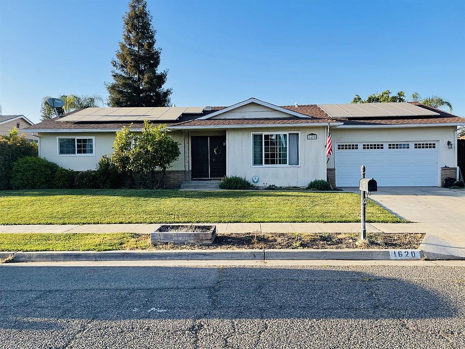 Welcome home! This adorable single story, ranch style home with OWNED SOLAR is ready for its new owners! When you arrive you will be pleasantly greeted with lovely wood laminate flooring, vaulted ceilings and a cozy brick fireplace. There is a large room in the front which can be used for an office, playroom, formal dining room or potential 4th bedroom. The chefs kitchen features a gas stovetop, stainless steel appliances, nice granite countertops, and a great view of the backyard. There are 3 nice size bedrooms, and the hallway bathroom has dual sinks with a door to the backyard/ pool area. The master suite features a slider door to the backyard, and the bathroom has been updated with a large walk-in shower with dual shower heads. The backyard oasis features a large grass area, beautifully fenced in pool area, covered patio, fruit trees, and large sparkling pool for those hot Fresno summers. Call and make your appointment today!