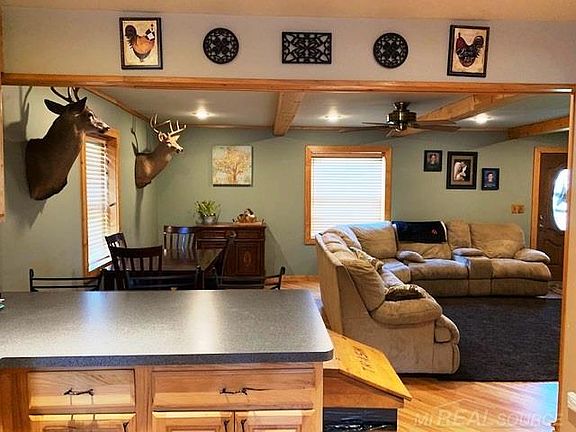 Welcome Home! Live in the city and feel like your up north! Quaint and Cozy bungalow located on 1 acre. Remodeled in 2000. Sq ft from recent appraisal. Home was remodeled in 2000. Inside boasts open layout, wood flooring, stone surround gas ventless fp, beamed ceilings, wood siding walls, recessed lighting, ceiling fans, kitchen w/36" wood cabinets, stainless steel appliances, snack bar, 2 full baths, 2 bdrms on 1st fl, upstairs features bedroom, oversized walk in closet, full bath, plenty of storage in walls, skylights (currently darkened for seller), 1st fl laundry w/front loading washer & dryer leads to large covered deck that overlooks your parklike setting back yard featuring fire pit, play fort and plenty of room for family gatherings! 2 1/2 detached garage also has 12'x24' enclosed overhang with direct access and sliding door for easy storage. Excludes: Chicken coop and wall furnace in garage
