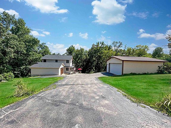 LOCATED ON A LAKE GREENWAY WITH A PERMITTED DOCK. Dock stays with property. Big house with 5 bedrooms, 3.5 baths and 2 bonus rooms for weekend overflow. The main floor has an open living room and kitchen area, sun room that doubles as a dining room, office, master bedroom with laundry and 1.5 baths. Upstairs are 4 bedrooms, full bath and 2nd laundry area. The upstairs has C/A. The full finished Lower level has a huge family room, 2 bonus rooms and walkout to a screened porch with lake view. Included is a whole house generator. There is a detached 2 stall garage with a loft and a second detached 24x24, 2 stall garage built in 2021. Many Newer upgrades including, paint, carpet in 2020. New kitchen cabinets and appliances in 2020. Quartz countertops in 2023. New Roof 2021. Replacement windows in 2021. The lake is just a short walk from the home and the dock is available for day use for parking your boat or anytime for fishing and swimming. This is a great opportunity to be on the lake for a super price.