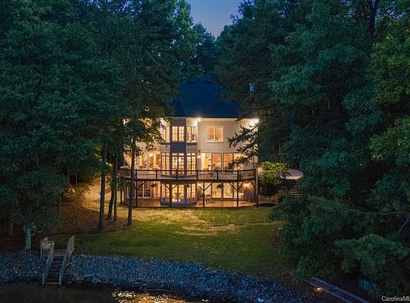 Custom home designed by Christopher Phelps with stunning views of Lake Norman. Two story entry w/ dramatic stairway & lots of natural light, warm wood flooring & plenty of lake views welcomes you. The formal living & dining room set the stage for more to come. A wall of windows offer more water views from the open kitchen w/ large island, breakfast nook & the comfortable family room w/ fireplace & built-in cabinetry. Large glass doors lead to the expansive deck, perfect for entertaining. A charming screened in patio provides an ideal spot for relaxing. Master bedroom features tray ceilings & spectacular views. Fully finished basement w/ beautifully crafted stone fireplace, recreation room & wet bar area also includes a full bath, bedroom/office & covered patio, all just steps away from your private dock & sandy beach. Early morning fishing, stunning sunrises, swimming in the cove, all day boating fun, & shady afternoons, this beautiful waterfront home is where memories are made.