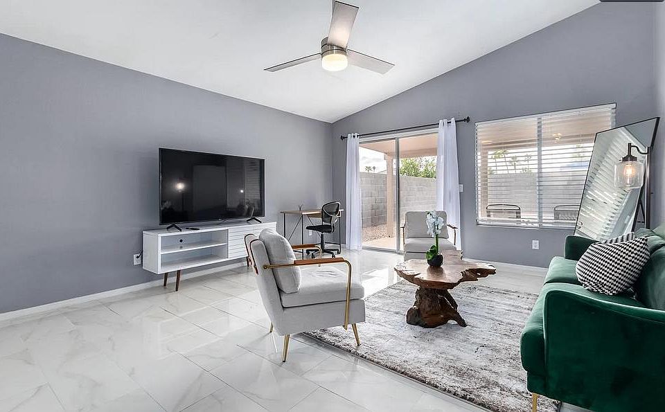 Welcome to our spacious and pet-friendly 3 bedroom, 2 bathroom rental in the heart of Chandler! Located just 5 minutes from the freeway, this home is conveniently situated near major shopping destinations such as Walmart and Whole Foods. For those in need of medical attention, a major hospital is also just a stone's throw away. Our rental features comfortable sleeping accommodations for up to 9 people, with 1 king bed, 1 queen bed, and 2 full beds. You'll find everything you need for a comfortable stay, as our rental comes fully furnished with amenities such as a coffee machine, toaster oven, cups, silverware, and kitchenware. We've even included shampoo and conditioner so you can pack light! Looking for some entertainment? We've got you covered. Our rental includes corn hole and games to keep you and your guests occupied during your stay. Book now and experience the comfort and convenience of our Chandler rental!