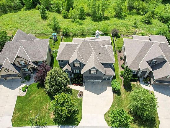 Stunning 2 story situated on gorgeous, private treed lot in popular Deer Valley subdivision! Spacious floor plan with main level office, dining room, living room, large kitchen with eat-in breakfast and hearth with floor to ceiling fireplace. Newly remodeled kitchen with new appliances, oversized island, walk in pantry and large bay window over sink. New covered composition deck with decorative wood ceiling overlooking heavily treed lot and paver patio with pergola below. Spacious secondary bedrooms and closet offering new carpet. Owners ensuite has walk- in closet, dual vanities, walk-in shower and jacuzzi tub. The perfect lower level for entertaining guests offering 5th bedroom, full bath, 3 flex areas and a wet bar with wine fridge. Adorable play space under the stairs is perfect for the littles. Desirable community amenities include a pool complex overlooking the sparkling 2-acre lake, playground, 20-acre stream way park, and walking trails. The home is located in the Award Winning Blue Valley School District. Close to restaurants, shopping, highway access and more!