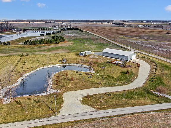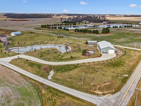 WOW! WHAT A PROPERTY! This is a car enthusiasts dream. This 48x102 building sits on a 5 acre corner lot atop a hill with the most gorgeous country views on all sides. Inside you'll find enough space for 12+ cars. Included is a car lift, air compressor, metal racks and full alarm system with cameras. On the main level is an approximate 1000 sq. ft. open living quarters. Up the steps you''; discover two additional rooms for whatever you like. Outside sits a new 40x16 shed for extra storage. There's also a pond with a solar powered aeration system. With 5acres there's enough land to build a house as well.There are surveillance cameras on the property.