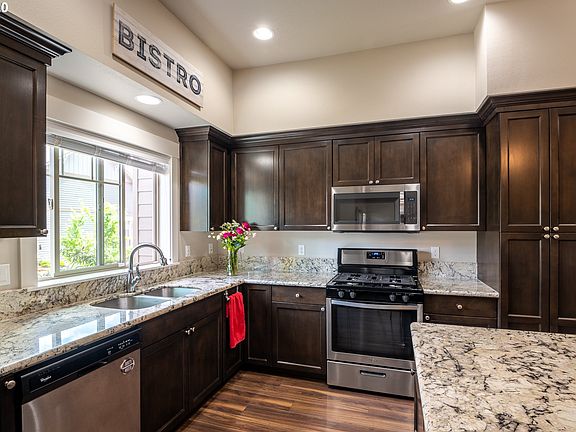 Newer Construction townhome with tons of amenities! Open concept family room & kitchen w/ cozy fireplace & custom mantle. Kitchen cabinets have soft close doors & drawers. Large bonus room/media room/office on main floor w/ queen murphy bed. Spacious bedrooms on upper floor. Master on-suite has high ceilings & a large walk-in closet. Tons of natural light! Weight room, pool, clubhouse, blanket insurance, & mgmt all inclded in very low HOA. N. Clackamas Schools. Community dog park & park nearby.