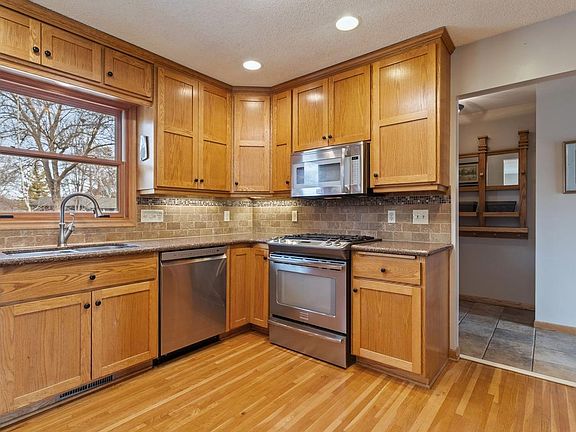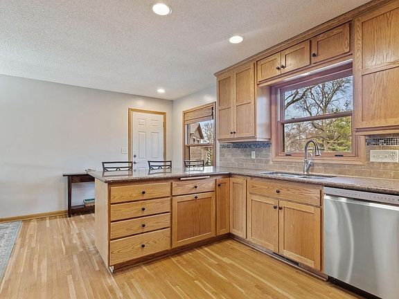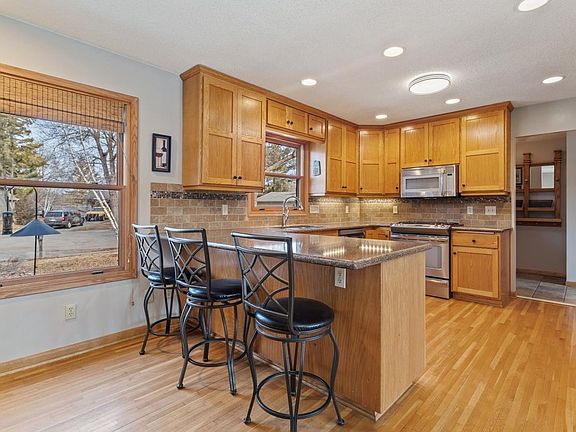 This large, beautifully updated rambler is at the end of a cul de sac in a highly desirable Minnetonka location. Gleaming hardwood floors throughout the main level as you enter to the front eat-in kitchen with stainless steel appliances and granite counters. Large living room/dining room with a huge wall of windows looking onto your private backyard. 4-bedrooms up plus office, primary suite addition includes en suite, vaulted ceiling, walk in closet and great views. Main floor family room has vaulted ceiling, lots of windows and leads to very large deck. Lower level walkout features large family room with new carpet, 3/4 bathroom, exercise area, large bonus room as well as a workshop and utility room. Fenced yard is almost 3/4 acre and very usable including a paver fire pit and patio off of walkout. In demand, award winning Minnetonka school district.