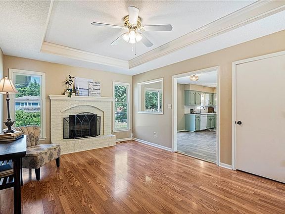 Outside, the third-acre lot is a gardener’s paradise, boasting several mature fruit trees, including gorgeous wisteria, Asian pear, Granny Smith apple, and two native paw paw fruit trees. A Tuff Shed provides extra storage for all your gardening tools and outdoor equipment.The large two-car garage adds convenience and additional storage.
