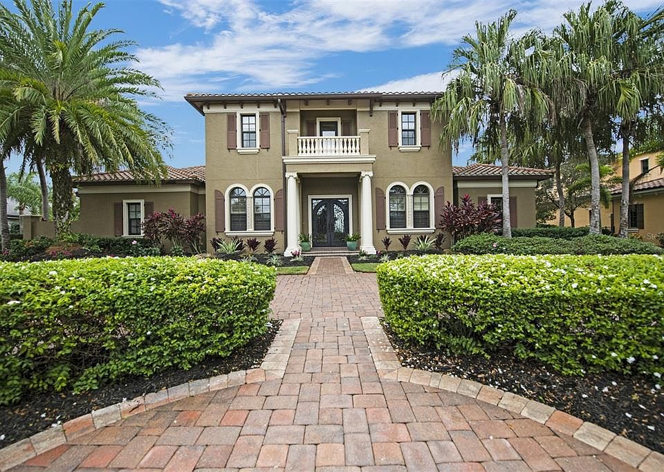 Beyond the gates of The Lake Club and perfectly poised on a tranquil lakefront lot, with the beautiful and highly desired Linear Park across the street, your dream home awaits ! This is not your typical cookie cutter home. Built in 2008 by one of the areas premier custom builders, no attention to detail was spared. The homes interior has been freshly painted, and over $35,000 in landscaping, including lighting, was just completed and adds to the "wow" factor! The new oil rubbed iron and glass front doors lead you into a magnificant great room with soaring 23' ceilings, beautiful built in shelves and a gas fireplace, 10 foot tall sliding glass doors open to an amazing Italian inspired outdoor living area complete with a large Resort Style sparkling salt water pool and spa complete with water features, a unique covered colennade, outdoor kitchen and spectacular water views. Back inside the home you will find a gourmet kitchen with solid wood cabinets, 2 pantries, large center island, breakfast bar and a built in bar area with wine fridge. The master suite comes equiped with 2 large walk in closets and a private sitting area, the master bath is luxuriously appointed with separate vanities, a walk in shower and 6' spa tub. A 1st floor guest ensuite features its own private entrance, patio area and a dry bar making it perfect for an extended stay or multi-generational living. A grand staircase, with wrought iron handrails, leads you to a bonus room, perfect for gaming and all forms of entertainment, and a large screened in balcony perfect for a cup of coffee or a glass of wine while watching the sun set. 2 additional bedrooms and bathrooms are found on the second story. Solid wood core doors and impact resistant windows are just a few of the features that help to make this home far from the ordinary. The Lake Club offers security and is amenity rich with two community pools, residents’ clubhouse with dining, gym, tennis, pickle ball and basketball. Lakewood Ranch living is an experience with fabulous shopping, restaurants, A rated schools and is located close to beaches and the Sarasota and Tampa airports. For golf enthusiasts, there are several golf courses just minutes from the Lake Club including the Ritz Carlton and The Concession. This one won’t last long so book your private tour today.