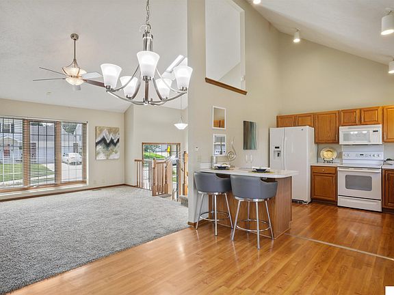 Experience the good life in this stunning home surrounded by Lake Zorinsky trail heads, walking/bike paths, fishing docks, playgrounds & nature galore! Towering ceilings and an open floor plan create a spacious ambiance flooded with natural sunlight. Situated on a culdesac & corner circle lot featuring a zero exterior entry, extra large deck, beautiful backyard & fullly fenced. Finished basement offers a fabulous brick fireplace, bathroom and enormous closets. Embrace an active lifestyle of comfort, character and the convenience of top notch shopping, restaurants and businesses right down the road! This stellar home is super clean, well taken care of and the location is sure to please all!