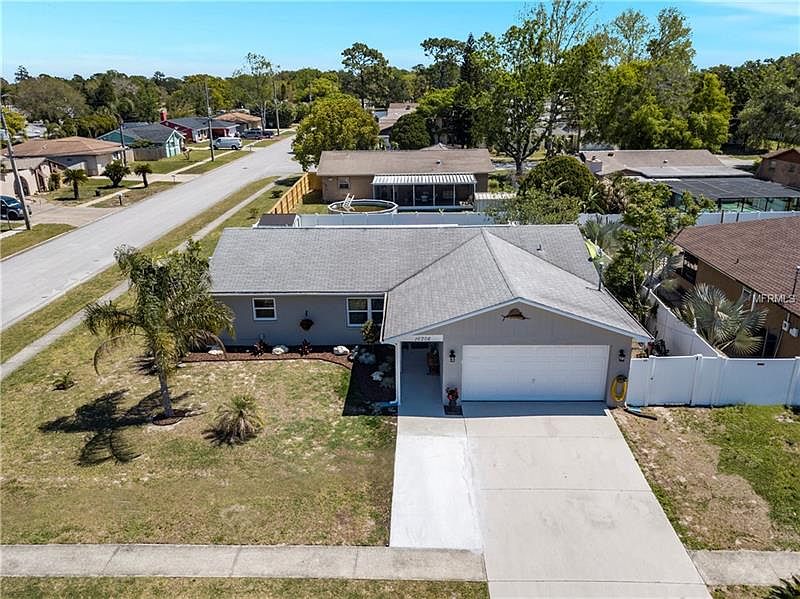 MOVE-IN READY and remodeled, this 3 bedroom, 2 bathroom, 2 car garage home sits on a nice sized corner lot with new vinyl fence to add privacy to your back and side yard. Bathrooms are stunning with their updated vanities and sinks, and gorgeous tiles. Your large open kitchen is remodeled with upgraded cabinets, countertops and backsplash to match, and new stainless steel appliances. Beautiful flooring throughout adds to the feel of the home. Large window over your kitchen sink allows you to look over your private backyard. Enjoy Floridan evenings on your covered, screened back patio. Let the pets out in this beautifully fenced backyard. Extra large parking area and adorable front entry give charm to this updated home with modern finishes. Your open floor plan also has a dinning area and large breakfast island/bar. Split floor plan offer privacy to the master bedroom and updated master bathroom. Master closet is a nice walk-in closet. Home is light and bright and inviting. The open floor plan allows for a lot of space for entertaining and enjoying your family and friends while you're in the kitchen/living room. Vinyl fence has double panel gates, so you have easy access to your backyard for your toys. Great location close to 19, close to Hudson Beach and Sam's Beach Bar (watch the sunsets every night), restaurants, and shopping.