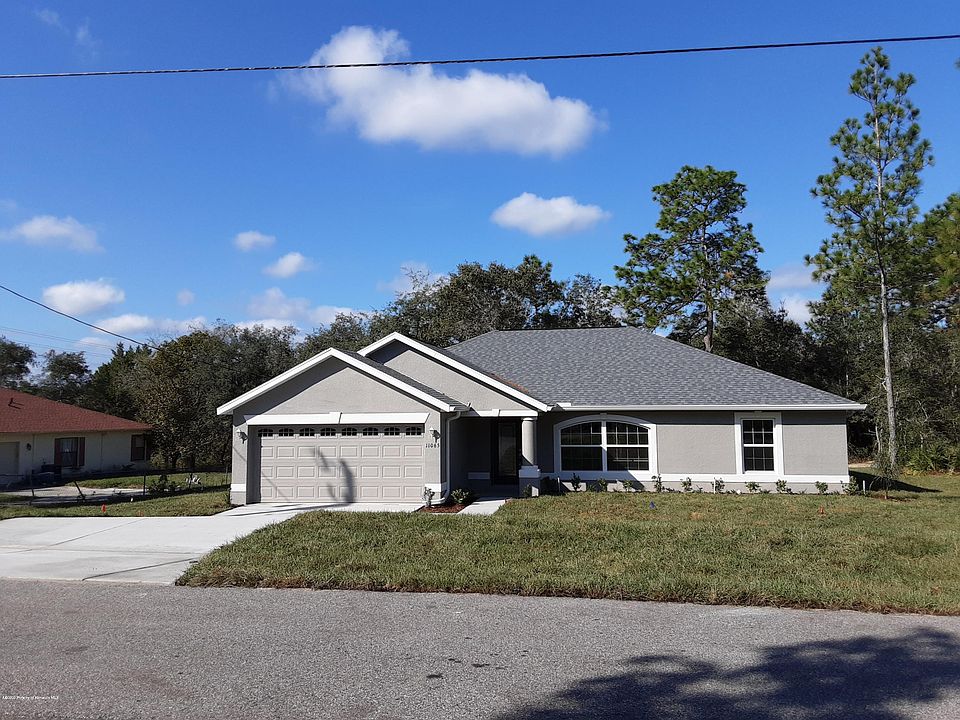 Beautiful Brand New Home Coming Soon on 1+ Acre Lot with Paved Road. Location of this home is convenient to Citrus County, Suncoast Parkway, Florida's Finest Waterways, and our State Forestry, and across for Sportsman Gun Range. No Deed Restrictions, No Cdd Fees. Peaceful with nature surrounding you. Home features will include a nice landscaped area with irrigation, Stone package on front of home for curb appeal, Upgraded Kitchen Cabinets with Granite Counter Tops, Covered Lanai to enjoy overlooking the wooded area, tile in all wet areas, indoor laundry with sink, lots of storage, keyless entry to home, split plan, large master suite with his/her walk in closets, dbl vanity, walk in tile shower, and much more. NO CONSTRUCTION LOAN NEEDED - USDA RURAL AREA FOR 100% FINANCE AVAILABLE - ASK YOUR LENDER. Contract Now to Choose Color Scheme.
