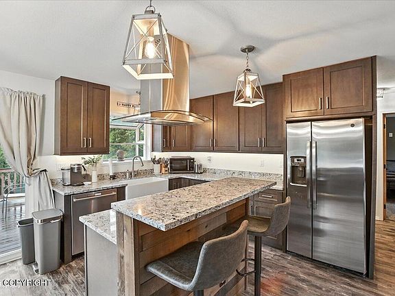 Welcome to this beautifully remodeled split level on the corner of a quiet cul-de-sac. Close to stores, restaurants, gyms and more, short commute to JBER.Large primary suite located downstairs for privacy with a 2nd living room and gym/office area with access to the backyard.Covered walkway from the garage to front door to keep you out of the weather.NO HOA! Brand new furnace 8/22!VA Assumable at 5.125% for qualified buyers. Also listed for rent for $2,895/mo. MLS#25-13197