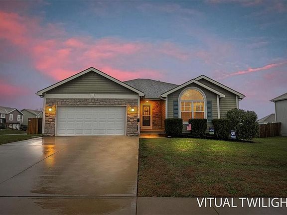 Don't miss this opportunity for a rare Ranch WITH a finished basement in Fox Ridge at Prairie Gardens! Tons of living space in this great home! Brand new paint on main level and brand new exterior paint Large living room with vaulted ceiling and gas fireplace. Three bedrooms and 2.5 baths on the main floor with generously sized bedrooms, especially the primary at 18x14! Bedrooms 2 and 3 share a Jack and Jill bathroom. Additional half bath in the hall. Kitchen boasts newer appliances and nice hardwood floors. Dining area has room for the table as well as a buffet or additional pantry cabinet. Sliding door to the deck and back yard. Lower Level finished with huge rec room and separate office/gaming area. Basement stubbed for additional bath. The home sits on a large corner lot with privacy fence. Neighborhood pool and acclaimed Basehor-Linwood schools!