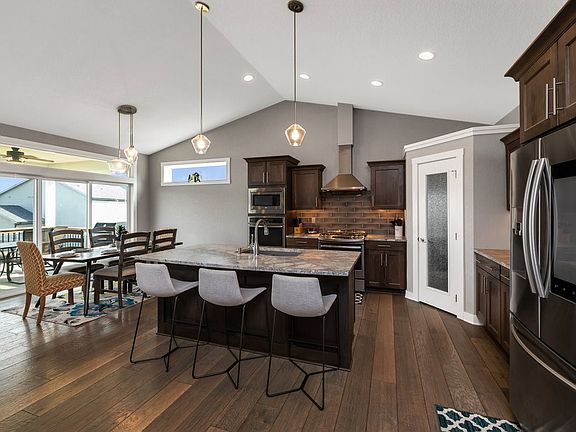 This floorplan is amazing! 3 en-suites in this walk out ranch in a beautiful Urbandale (Waukee schools) neighborhood! Almost 3000 sq ft finished. Main level boasts a beautiful kitchen with tons of cabinets/walk-in pantry/large island and for those that love to cook- a gas stove with hood vent PLUS a wall oven! Covered deck off your dining area. Beautiful living room with a stone fireplace. Primary suite is very large- attached is ensuite w dual vanity/linen tower/separate toilet room/walk in shower with dual shower heads and walk-in closet. Bedroom #2 & #3 are on opposite side of the main level with bedroom #2 having direct ensuite access to the full bathroom. Mud room/laundry room round out the main level. Bsmt boasts large windows for tons of light/ a wet bar/ 2nd stone fireplace/ large family room to entertain and bedrooms #4 & #5 with #5 having direct ensuite access to the full bathroom with a double vanity. Large storage area/ dual zone heating/cooling/ mostly fenced in yard/passive mitigation/ custom window treatments and water softener are just a few of the many perks!!! Call your favorite agent today to get in and see this beautiful home!