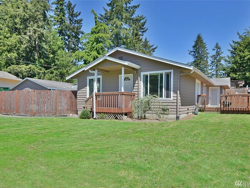 Beautiful home, on large lot w/ lots of outdoor entertaining space! Level grassy yard, party size deck, private patio, & large detached garage w/ office/den! This home has an open floor plan, open kitchen w/ french doors that lead to deck. Double pane vinyl windows, & newer flooring in living room & bedrooms. Located on private street w/ a cul-da-sac.