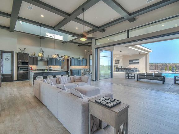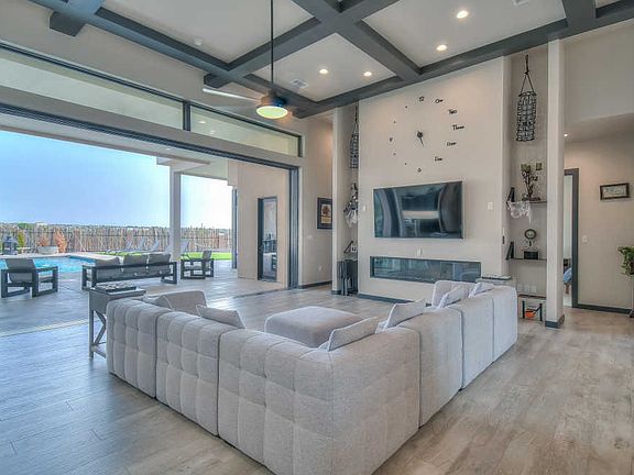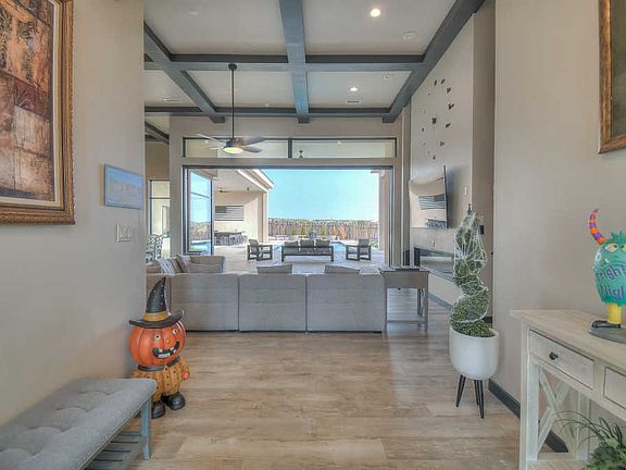 Unique Modern Masterpiece Nestled On 1.16 Acres Surrounded By Stunning Custom Homes! Enter Spacious Perfection 14' Ceilings, Oversized 16'x10' Retractable Glass Doors Combining Indoor/Outdoor Elegance. Plentiful Pella Windows Provide Uninterrupted Views Of Water Shooting Into A Luxurious Heated Pool. One Of A Kind Oversized L Shaped Covered Patio Complete With Outdoor Bar & Amazing Mountain Views. Living Area Showcases Premium Tile, Linear Fireplace, Crawford Ceilings, & Wood Beams. Beautiful Gourmet Kitchen w/Granite Waterfall Island, Built In Oven/Microwave, Gas Cooktop, Range Hood & Coffee Bar. Ultimate Movie Theater w/Wet Bar, Wireless Multi-room Sound System. Master Suite w/Coved Ceiling, Pool Views, Oversized Shower, Freestanding Tub w/Views, Remote Controlled Privacy Blinds & Gym!