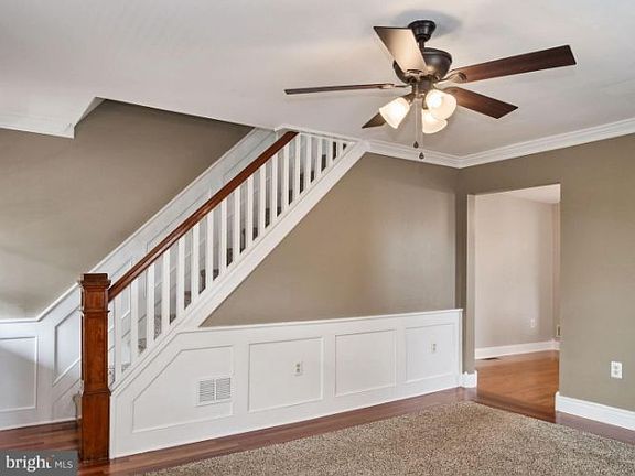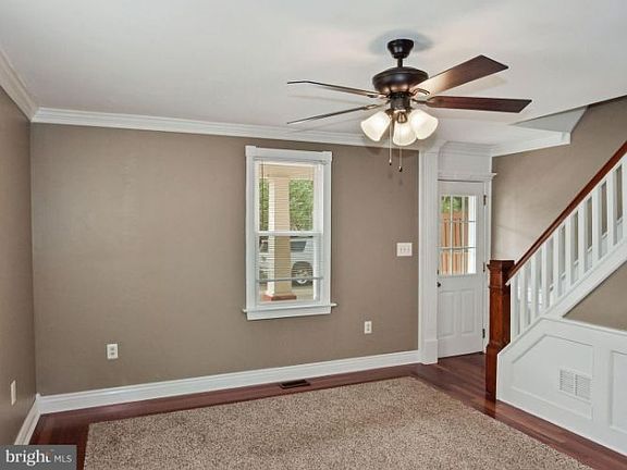 Must See! This semi- detached home features a covered front porch, formal living room and dining room with beautiful hand crafted wood trim, Spacious kitchen with Plenty of Cabinets. The laundry area is conveniently located next to the kitchen and half bath. This leads out to the beautifully landscaped back yard. You can entertain on your deck or Paver Patio. Upstairs you will find the Master Bedroom, Main bath and Second bedroom. The third floor features a large size bedroom. The basement and shed are great for storage.