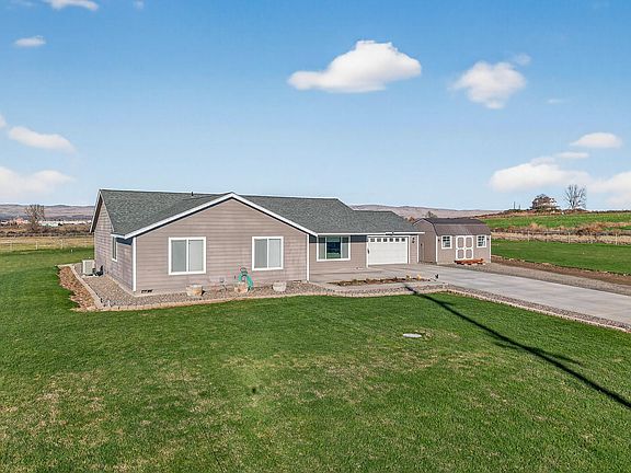 MLS# 289385 Discover the perfect blend of comfort, convenience, and wide-open space in this beautifully maintained 2012 custom-built Lexar home. Offering 4 spacious bedrooms and 2 bathrooms, this property features an inviting open-concept layout, new luxury flooring, fresh interior + exterior paint, and an expanded paved driveway that leads seamlessly to the road and expanded back patio, looking out to your beautifully manicured lawn. Every detail has been thoughtfully curated to make it a dream property.Step inside to find generously sized bedrooms, bright living spaces, and an effortless flow that makes everyday living and entertaining a breeze. The attached two car garage includes built-in storage, while multiple outbuildings provide endless possibilities. Create a home office, home gym, workshop, small business space, or even transform one into an ADU. Sitting on 4.86 acres, this property gives you room to build, grow, or simply enjoy the peace and privacy of country living. The entire perimeter is fully fenced, and the acreage is equipped with a full sprinkler system on irrigation. Located just the right distance from town, freeway access, and neighbors, this home offers ideal accessibility and location. Immaculately cared for inside and out, all the hard work has already been done for you. Take action on this rare opportunity, homes like this don’t come around often. Move-in ready and waiting for its next chapter!