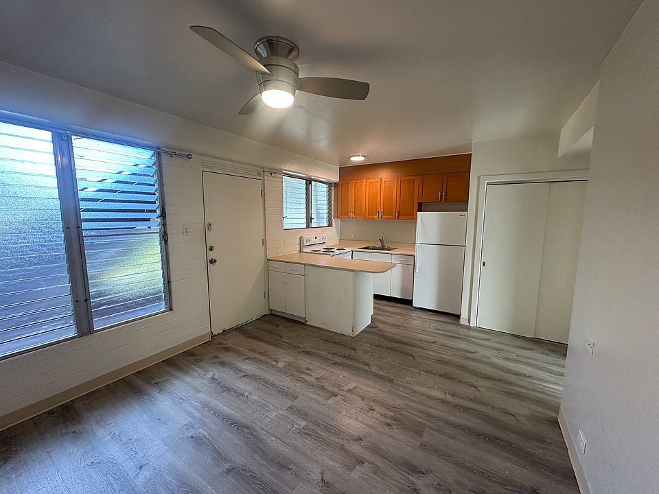 A well-maintained 1-bedroom/1-bathroom unit on the second floor in Lower Makiki. Parking and coin laundry available on-site. Tenant pays electricity, cable and internet. Assigned parking stall available for $100/mo. No smoking. One small (limit 25 lbs.) pet allowed with $100 pet deposit and $50/mo. pet fee. Tenant must obtain a renters insurance policy upon lease signing. Minimum lease term is for 6-months; 1-year is preferred. Minimum income qualification is 2.5 times monthly rent.