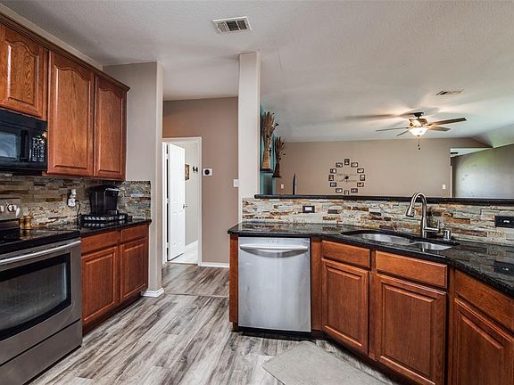 Beautiful 1 story home with brick exterior. This home offers 4 bedrooms, 2 bathrooms, 2 living areas. The spacious kitchen features 42 inch cabinets, sparkling stainless appliances, granite counters and trendy stone backsplash. Kitchen and living areas have wood laminate flooring recently added. Master bedroom offers a nice ensuite with double granite sink vanity. The fenced backyard features a covered patio for grilling. ALL this within minutes of all that Alliance area offers.